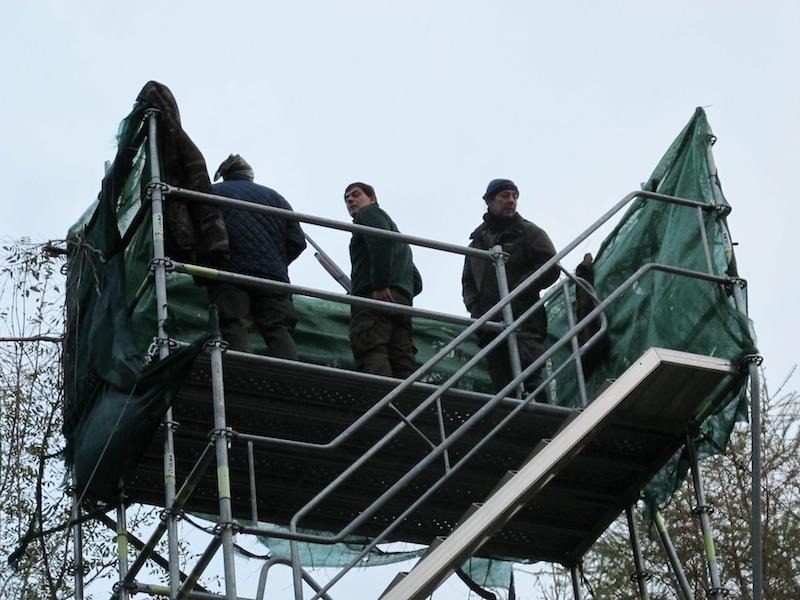 Argazki txukunak lortzeko, gainera, postura igo behar. Ez da broma. Bertigoa eta ehiza ez dira bateragarriak. Hori da eskailera pila… Ulma enpresaren pegatinak ikusteak, lasaitasun apur bat ematen du.