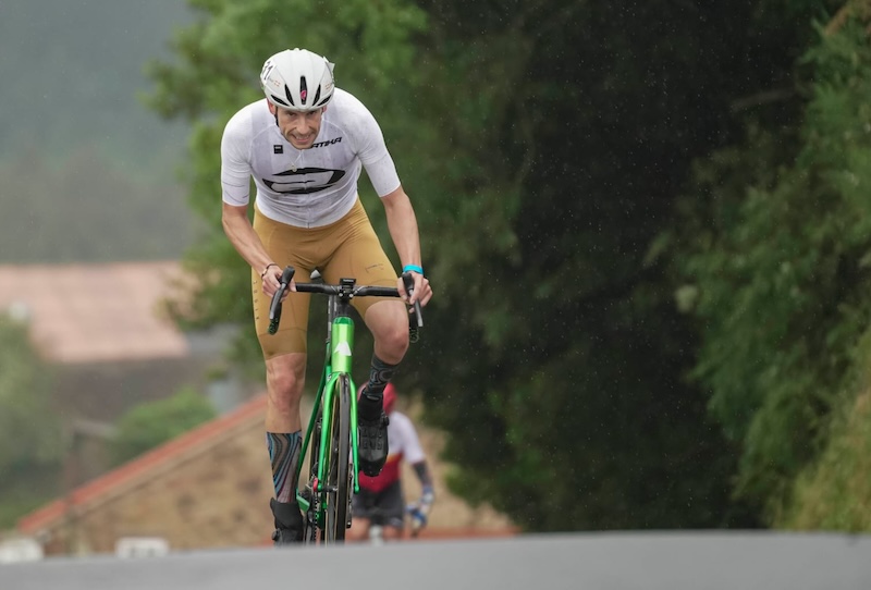 Bizikletan bi hanken arteko aldea zazpi zentimetrokoa da, eta ezkerreko biela motzagoa da. Orain kaladun zapatilak ditut, eta ezkerrekoa berezia da, altxagarria duelako, eta pedalak ere eranskin bat du. Zumarragako Zatika dendako Joseba Irizar biomekanikoak diseinatu dit guztia.