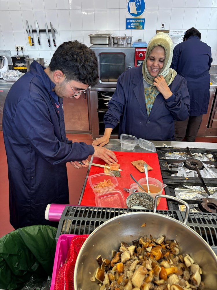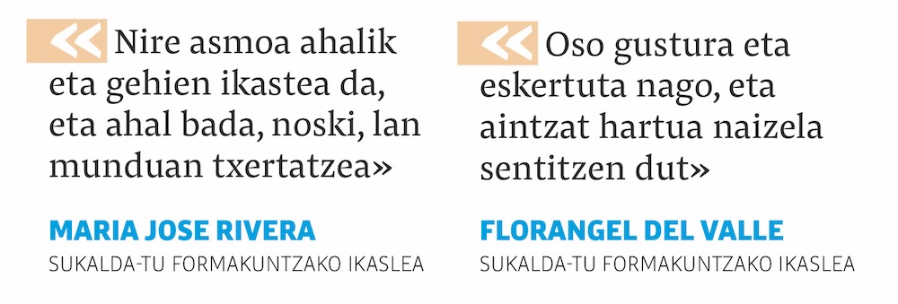 Sukalda-tu prestakuntza ibilbidean parte hartzen ari diren bi pertsona, joan zen astean, Goierri Eskolan.