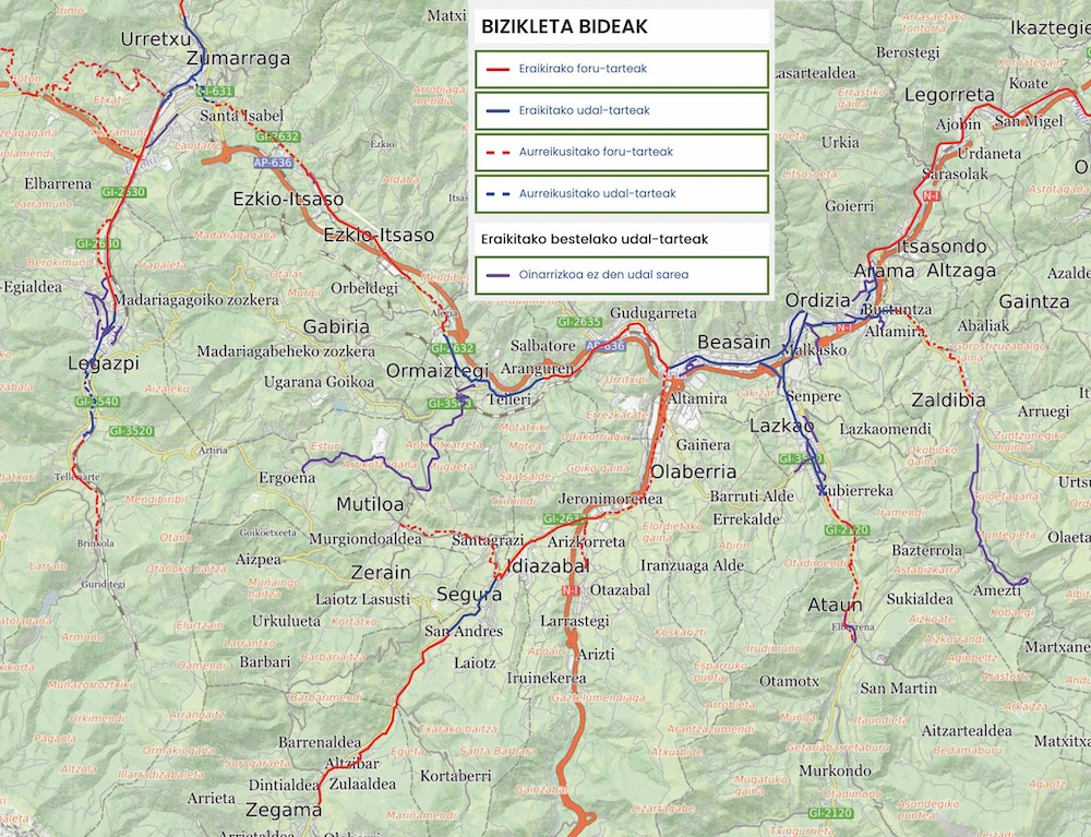 Gipuzkoako Foru Aldundiak lurraldea bizikleta bidez lotzeko osatu nahi duen sarean makina bat hutsune daude oraindik, horietako batzuk Goierrin. Zaldibiara eta Ataunera doazen adarrak dira horietako bi.
