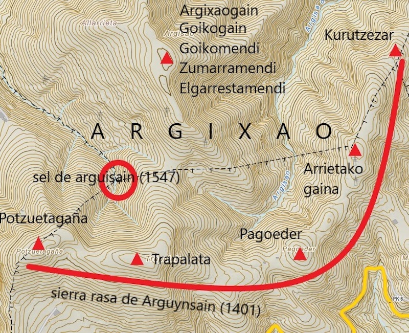 Horrekin lotuta, esan behar da Argixao mendi-multzoko goragunerik handienarentzat (601 metroko garaiera duena) lehengo baserritarrek izen hauek erabiltzen zituztela: Goikomendi, Goikogain, Argixaogain, Zumarramendi eta Elgarrestamendi. Argixao soila, inork ez.