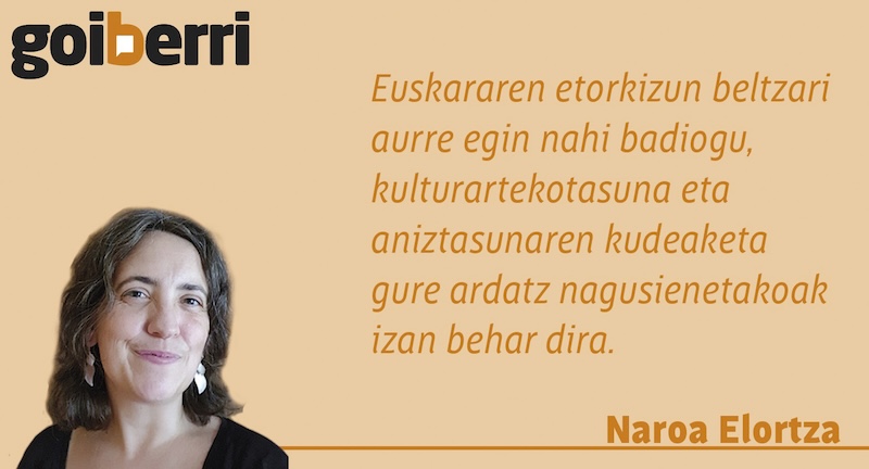 Dena den, egungo paradigman eta egoera demografikoan ezin dugu utzi euskalduntze prozesua soilik ikastetxeen esku; are gutxiago gure herrietan eskola segregazio kasu larriak ditugunean. Horregatik behar dugu kulturartekotasunaren aldeko apologia. Euskararen etorkizun beltzari aurre egin nahi badiogu, aurreikuspen guztiak irauli nahi baditugu, kulturartekotasuna eta aniztasunaren kudeaketa gure ardatz nagusienetakoak izan behar dira.