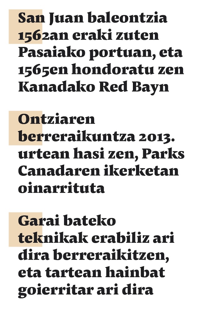 XVI. mendean, Euskal Herria itsas potentzia garrantzitsua zen. Ontzi handiak eraikitzen hasi ziren Atlantikoa zeharkatzeko, Ternua eta Labrador (Kanada) aldera balea ehizara joateko. «Barruan 60 marinel ingururentzako tokia zegoen, baita balea harrapatzen zutenean hura zatikatzeko, haren olioa ateratzeko eta dena gordetzeko tokia ere», zehaztu du Kerexetak. Bestalde, ontzi gainean 3-5 txalupa edukitzen zituzten, uretara beheratzeko prest. Masta nagusia 30 metro ingurukoa zuen: «Hortik arrantzaleek baleen arrastoak bila zitzaketen».