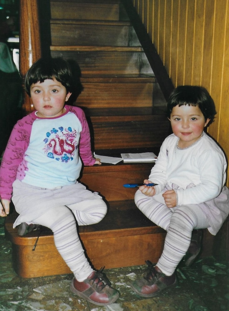Albokoa da Ianire Aranzabe Garmendiak aukeratu duen argazki kuttuna. Bere ahizpa bikiarekin batera ageri da, Eneritzekin, familiak zeukan jatetxearen sukaldeko sarrerako eskaileretan eserita biak, jolasean ari direla.