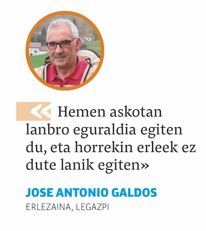 Etorkizuna «oso beltz» ikusten du Altunak Gipuzkoan. «Ni ez nabil ondo, eta nire inguruan ere jendea txepelduta dago. Urte osoa lan egin, eta hilabete bakar batean ia erle guztiak izorratzen zaizkizu. Inpotentzia handia da».