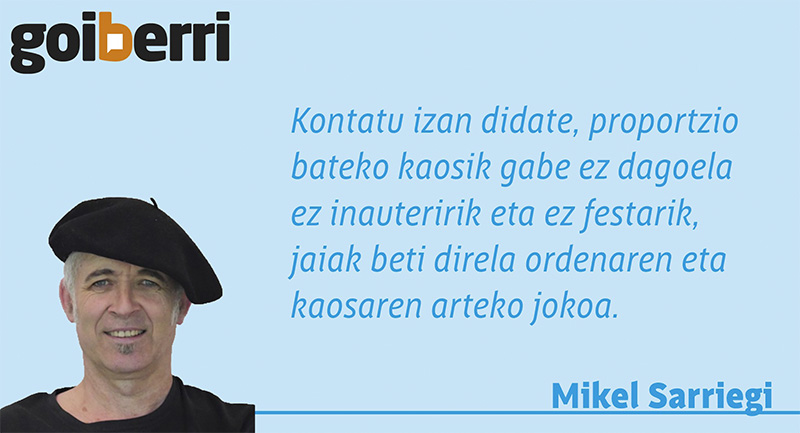 Kontatu izan didate, baina, aldi berean, proportzio bateko kaosik gabe ez dagoela ez inauteririk eta ez festarik, jaiak beti direla ordenaren eta kaosaren arteko jokoa: kaosa gailentzen bada, muga arriskutsuak gainditzeko arriskua dago; baina kaosa ezabatzen bada, jaiak berak indarra galtzen du eta desagertu egiten da.