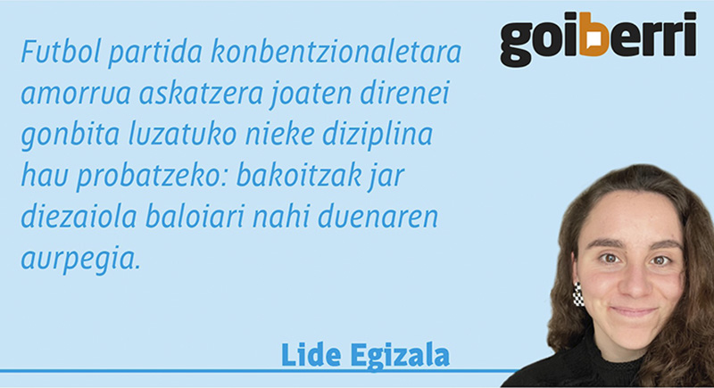 Egia esan, futbol partida konbentzionaletara amorrua askatzera joaten direnei gonbita luzatuko nieke diziplina hau probatzeko: bakoitzak jar diezaiola baloiari nahi duenaren aurpegia, Francorena izan, edo ondokoarena, akaso. Nolanahi ere, performancearen izenean, gauzak oihuka edo ostikoka konpondu beharrean, badira alternatiba egokiagoak ere: arteaz gozatzea, esaterako… edo zuzenean terapiara joatea.