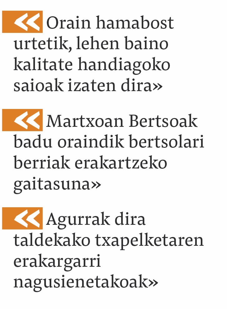 Beraz, taberna giroan sortzen diren bertsoetan, publikoaren barreetan eta oholtzara lehen aldiz igotzen diren herritarren urduritasunean, bizirik dirau Martxoan Bertsoak. Ia mende laurdeneko ibilbidearen ondoren, bere hasierako espirituari eusten jarraitzen du ekimenak, eta aurrerantzean ere hori «hauspotzen jarraitzeko lanean» segituko du Bertso Eskolak. ■